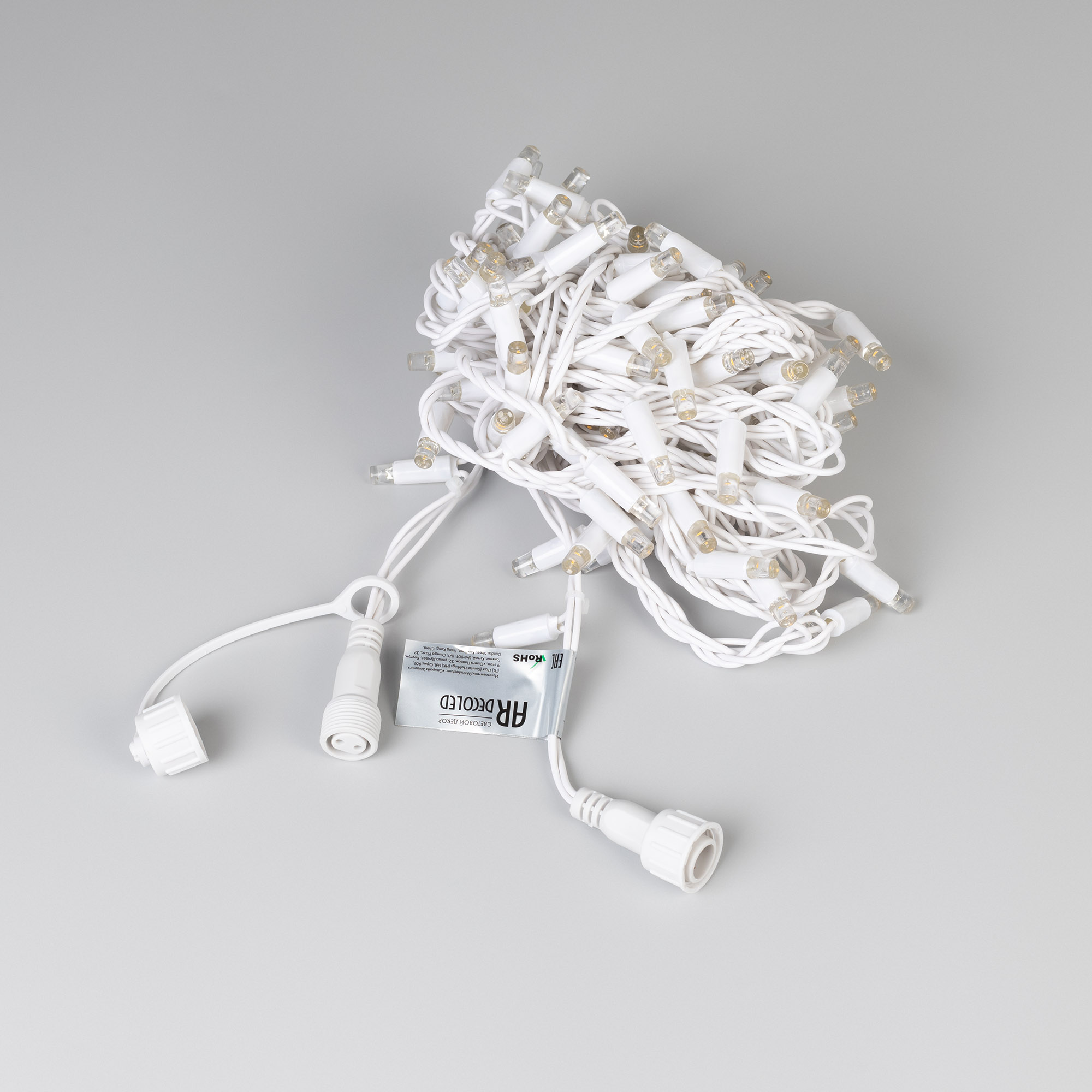 Универсальная светодиодная гирлянда "НИТЬ" серии Classic, предназначенная для декорирования и создания праздничного настроения как внутри помещений, так и снаружи (степень пылевлагозащиты IP65 позволяет размещать гирлянду на улице под навесом). Имея длину 10000 мм, она может использоваться для оформления средних и больших площадей. Универсальные соединительные разъемы позволяют наращивать длину до 50 м без использования дополнительных аксессуаров. Прозрачная вогнутая линза и эффект медленного мерцания каждого светодиода обеспечивают яркое, динамичное освещение, выделяя украшаемые объекты. Холодный белый свет помогает создать необходимую атмосферу для декоративного объекта. Провод изготовлен из ПВХ и окрашен в белый цвет. Аксессуары для подключения гирлянды к сети и управления приобретаются отдельно