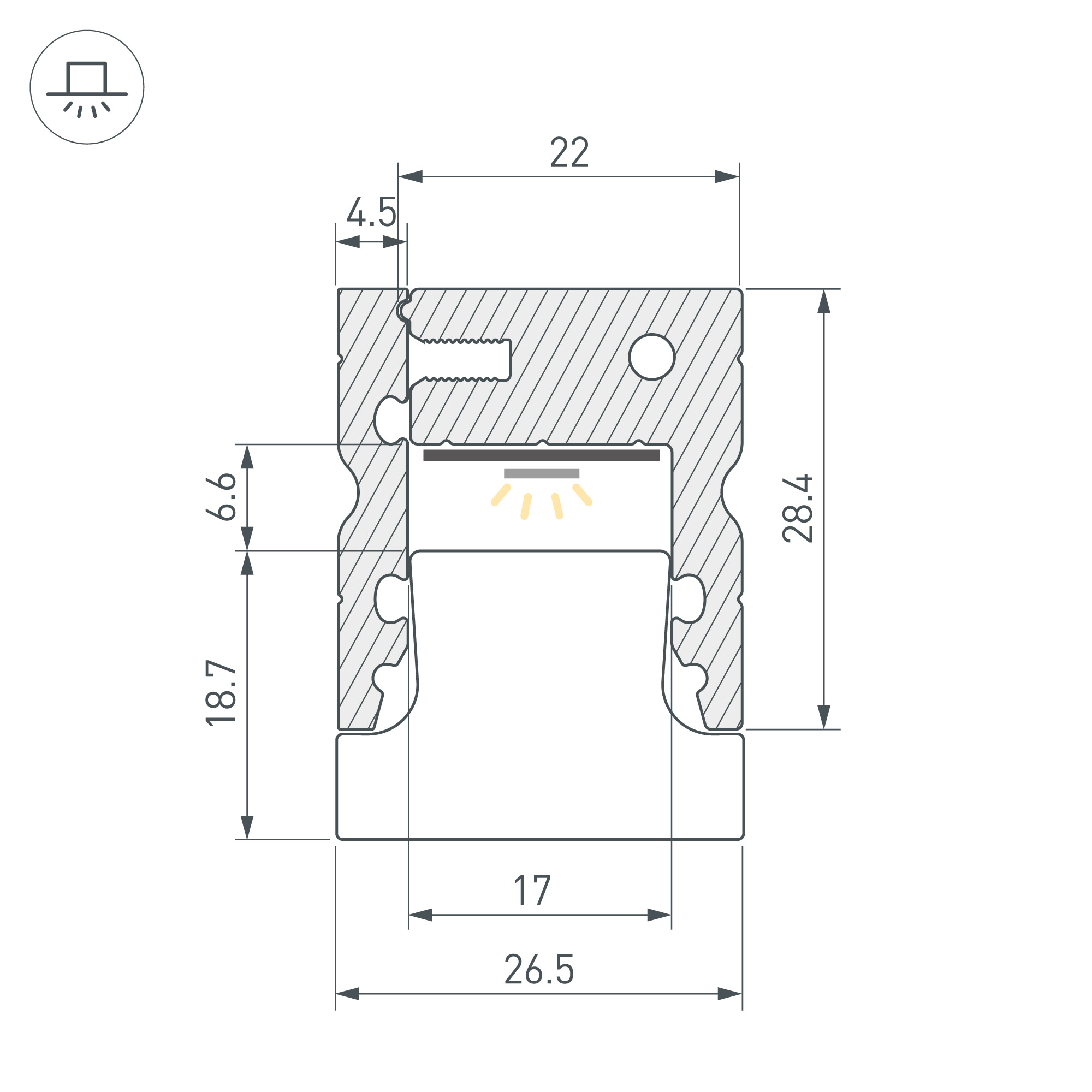 Алюминиевый светотехнический профиль для установки светодиодной ленты или линейки. Цвет серебристый. Длина 2000 мм, размер сечения 26,5х28,4 мм. Устойчив к стандартным нагрузкам для полов, встраиваемый монтаж с помощью держателей или профиля-держателя (приобретаются отдельно). Рассеиваемая тепловая мощность 29,6 Вт/м позволяет подобрать источник света необходимой яркости и температуры свечения и реализовать самые интересные решения. Профиль охлаждает светодиодную ленту, продлевая срок её службы и сохраняя яркость, а также защищает от воздействия пыли, влаги и других внешних факторов. Высококачественное анодированное покрытие защищает профиль от внешних воздействий и коррозии. Светотехнический профиль - отличное решение для создания современных световых проектов.
