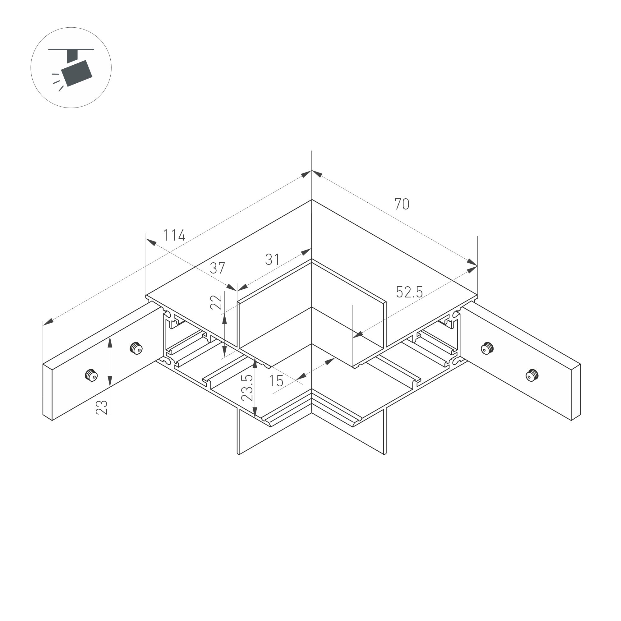 Угловой коннектор для встраиваемого трека MAG-ORIENT. Материал алюминий, цвет черный. Размеры 67x67x26x53мм. Аксессуары для соединения с треком приобретаются отдельно. Соединение треков между плоскостями.