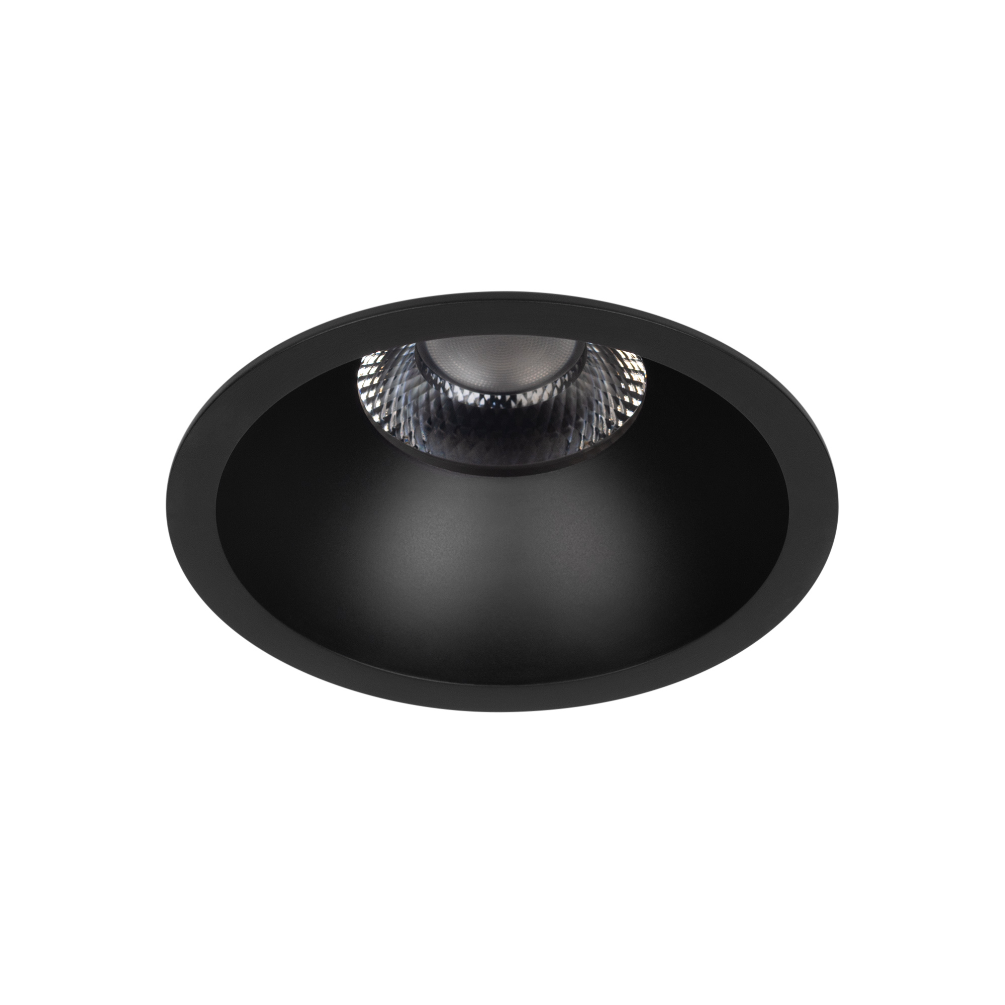 Встраиваемый светильник даунлайт. Мощность 15 Вт, св. поток 1260 лм, 84 лм/Вт, тёплый 3000 K, CRI>90, угол 50°, напряжение питания 230 В. Чёрный круглый корпус из алюминия, степень защиты IP20. Размер: диаметр 106 мм, высота 63 мм. Монтаж встраиваемый, установочное отверстие: диаметр 95 мм. UGR<14. Драйвер 27-40 В, 350 мА, пульсация <2%.