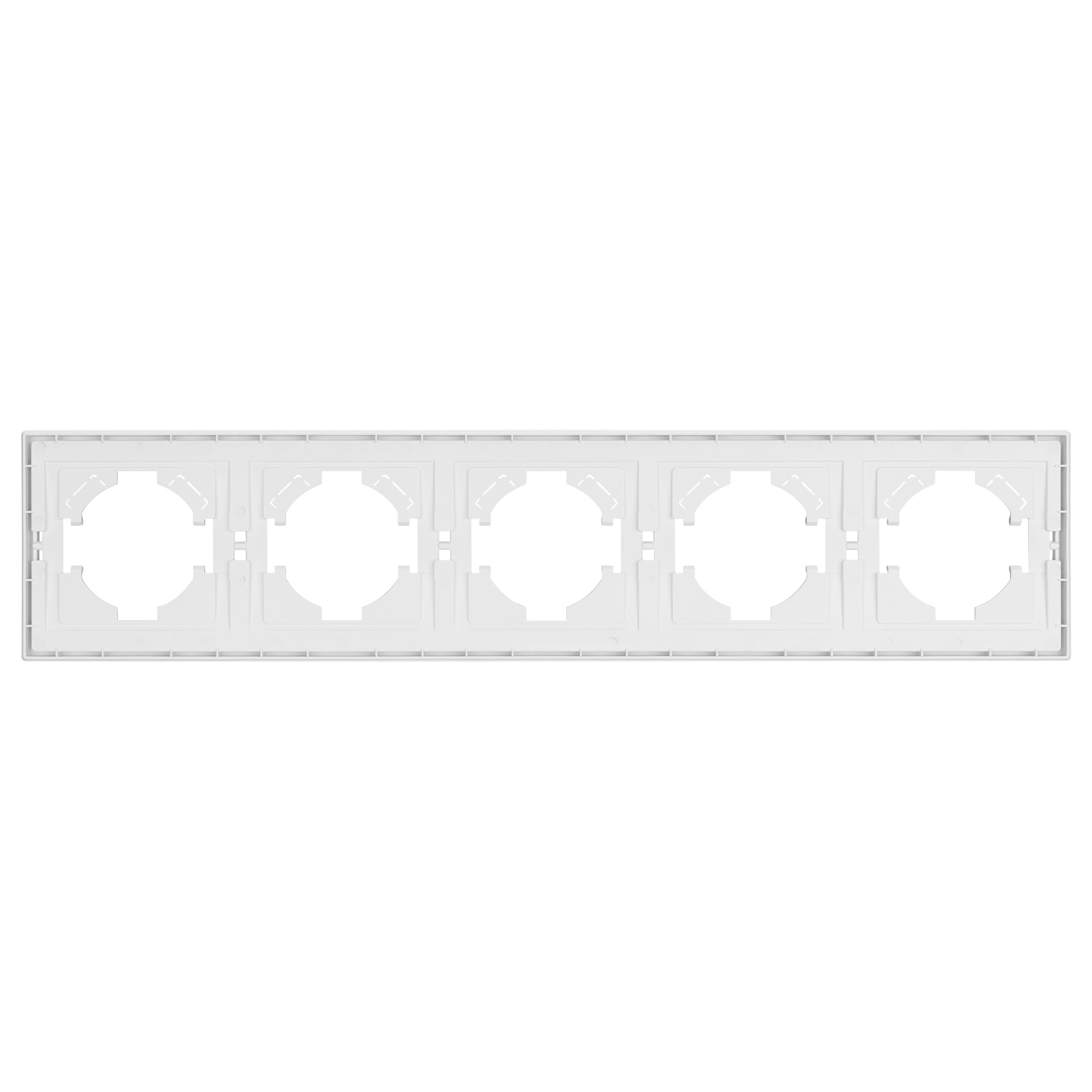 Рамка пластиковая на 5 постов, под встраиваемый механизм. Цвет - белый. Среднего уровня герметичности IP20. Ориентация монтажа горизонтальная.