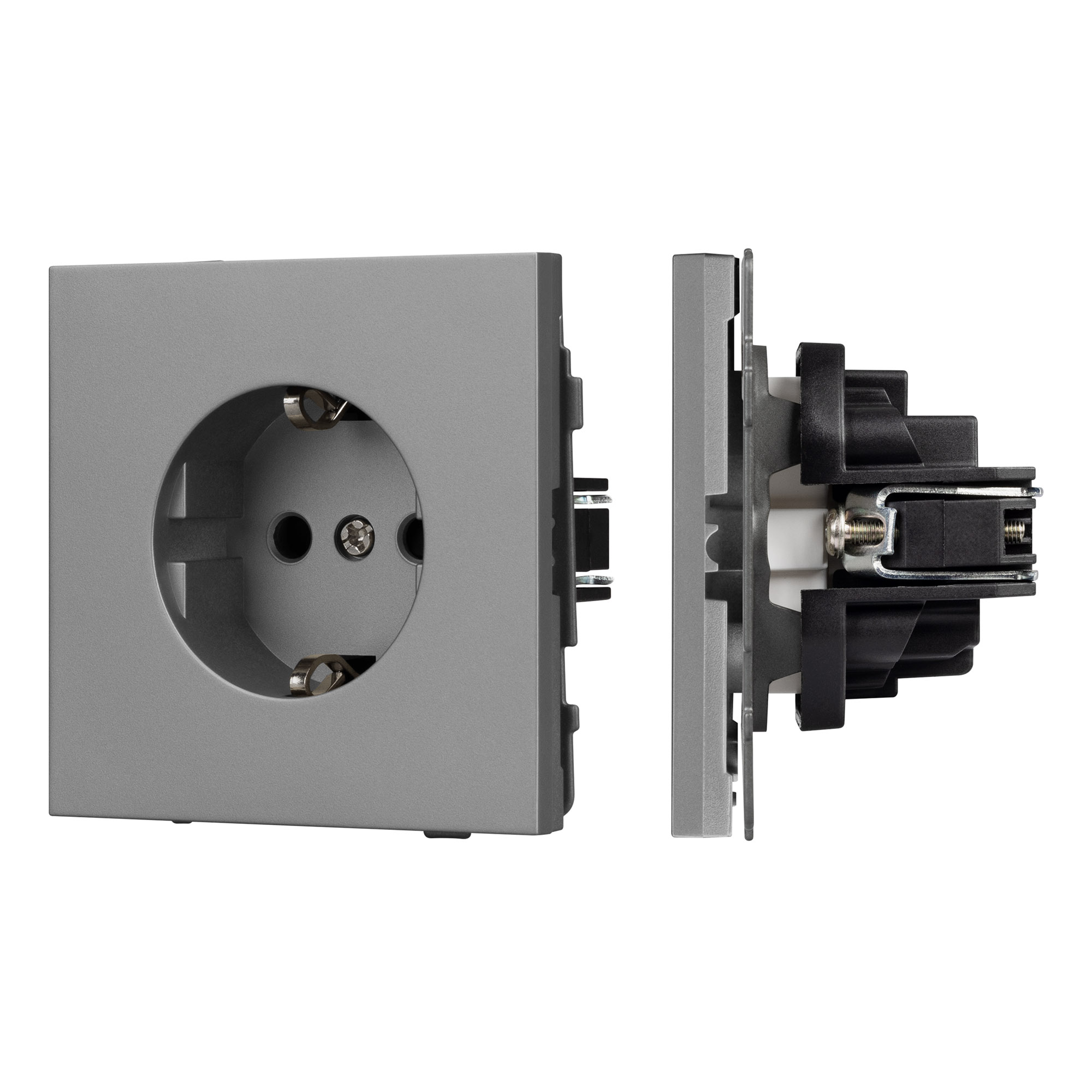 Механизм розетки с заземлением на 1 пост. Цвет - серый. Без фронтальной рамки. Уровень пылевлагозащиты IP20. Розетка устанавливается в стандартный подрозетник круглого сечения диаметром 60мм.