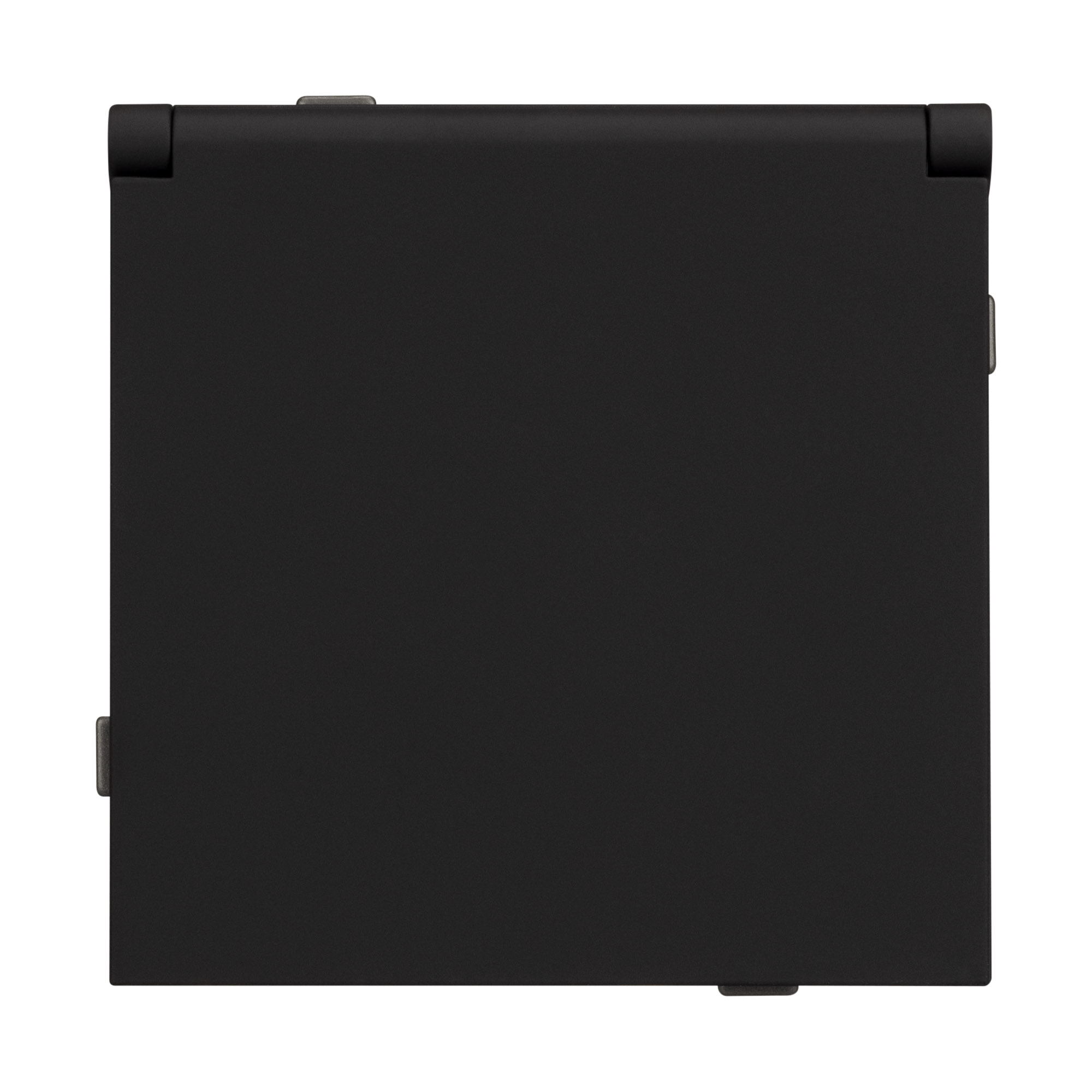 Механизм розетки с заземлением и влагозащитной крышкой на 1 пост. Цвет - черный, с Soft-Touch покрытием. Без фронтальной рамки. Уровень пылевлагозащиты IP44. Розетка устанавливается в стандартный подрозетник круглого сечения диаметром 60мм.