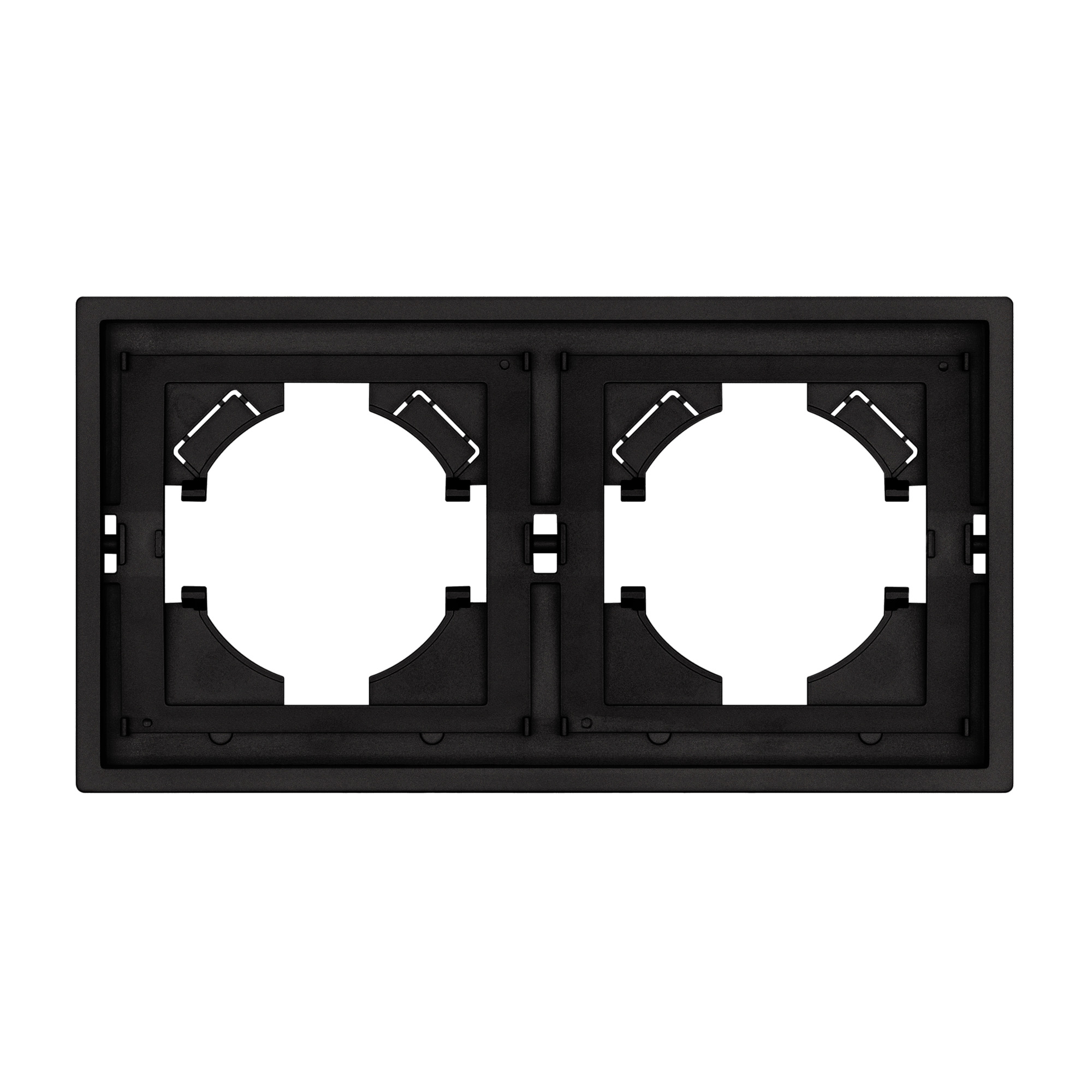 Рамка пластиковая на 2 поста, под встраиваемый механизм. Цвет - черный, с Soft-Touch покрытием. Среднего уровня герметичности IP20. Ориентация монтажа горизонтальная.