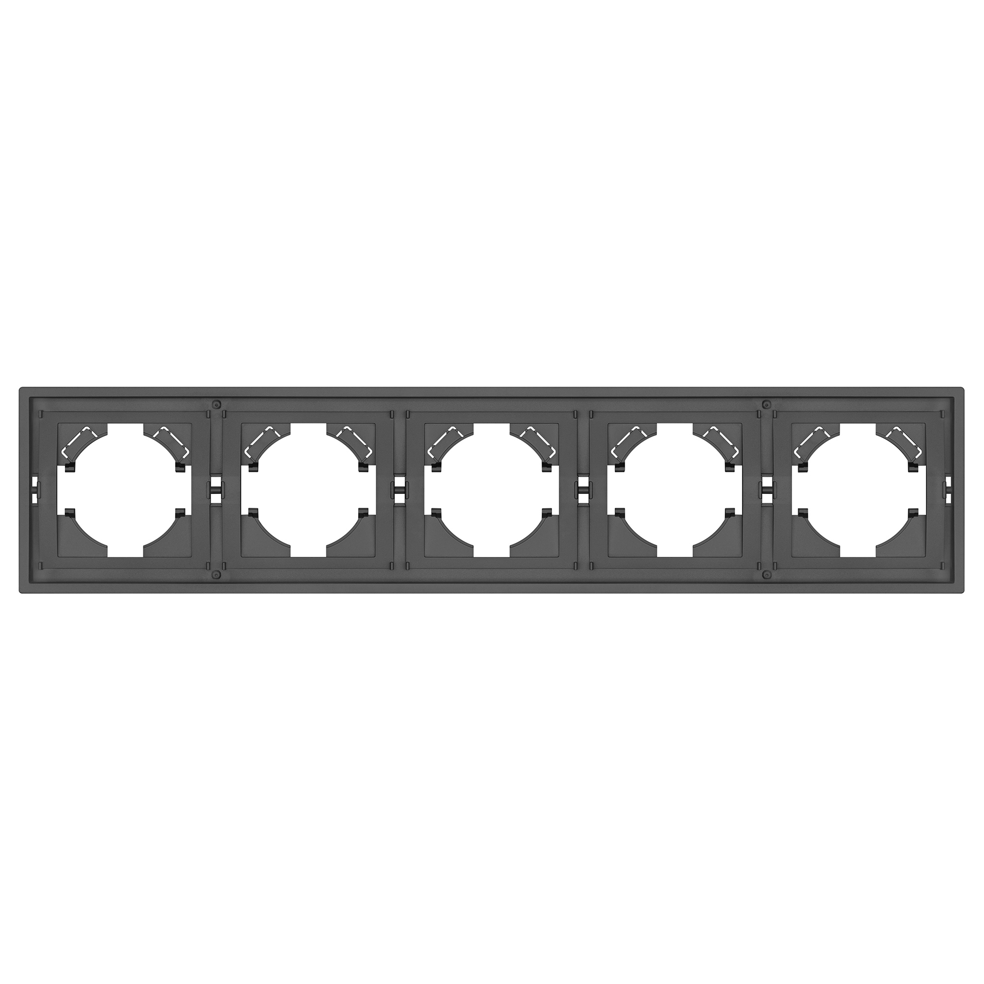 Рамка пластиковая на 5 постов, под встраиваемый механизм. Цвет - серый, с Soft-Touch покрытием. Среднего уровня герметичности IP20. Ориентация монтажа горизонтальная.