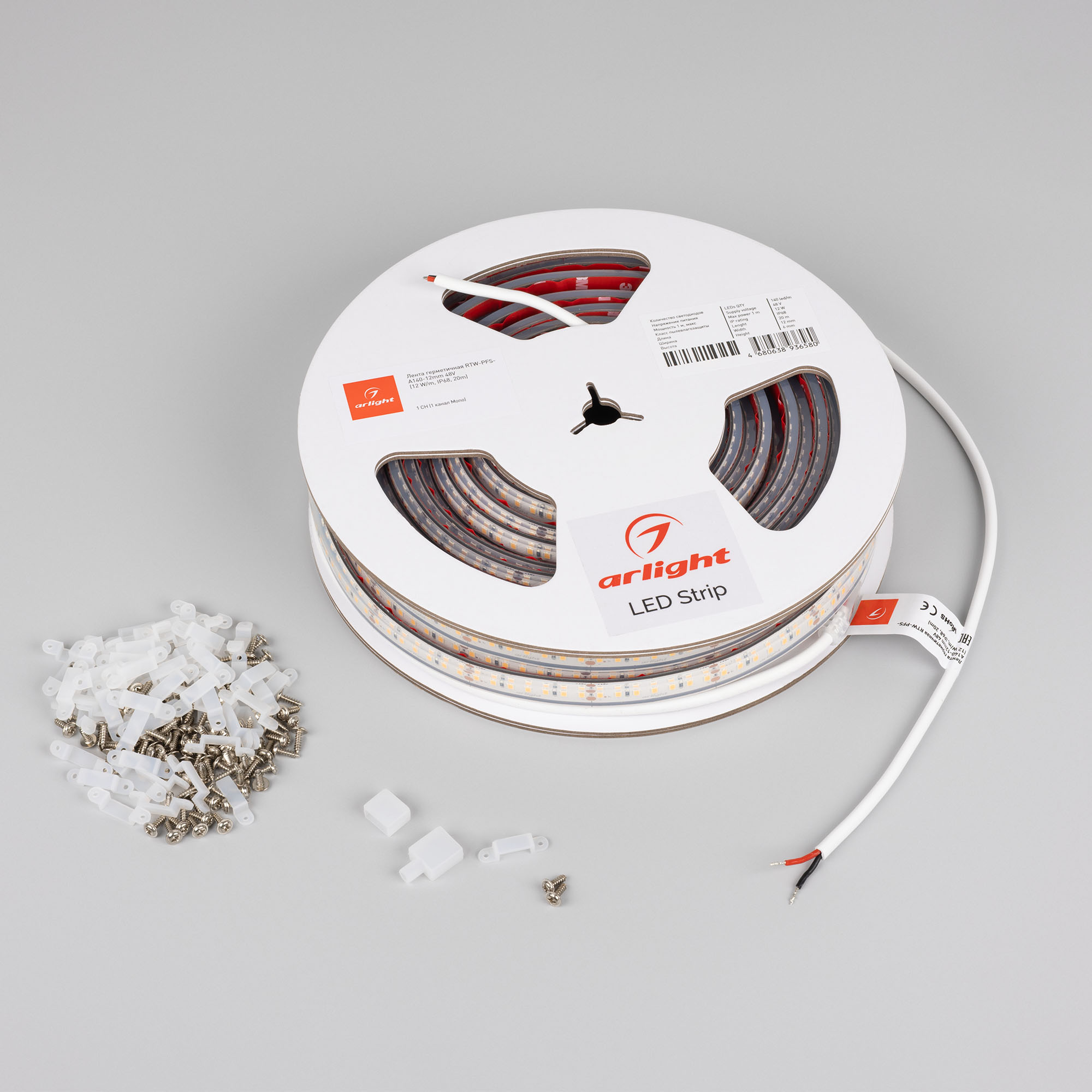 Светодиодная герметичная лента RTW серии A140 с подключением до 20 м с одной стороны. Степень защиты IP68, лента в силиконовой оболочке, устойчива к УФ излучению, широкий диапазон рабочих температур -40..60°C. Светодиоды SMD 2835, 140 шт/м, теплого цвета свечения (2400K). Предназначена для декоративной подсветки в помещениях и на улице. Имеет увеличенный кабель питания 1 м для удобства монтажа и установки. В комплекте силиконовая заглушка глухая - 1 шт, силиконовая заглушка под провод - 1 шт, силиконовые скобы - 60 шт.