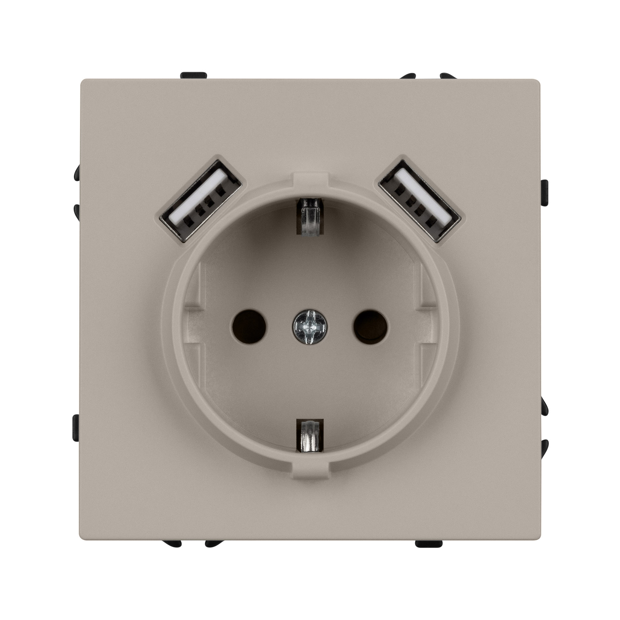 Механизм розетки с заземлением на 1 пост и 2USB Type A порта. Цвет - кашемир, с Soft-Touch поверхностью. Без фронтальной рамки. Уровень пылевлагозащиты IP20. Розетка устанавливается в стандартный подрозетник круглого сечения диаметром 60мм. Габаритные размеры: длина 71 мм, ширина 71 мм, высота 53 мм. Гарантийный срок 10 лет.