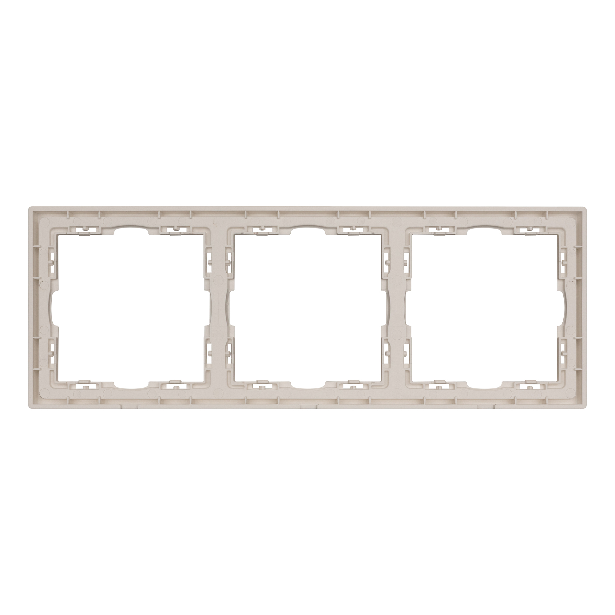 Рамка пластиковая на 3 поста, под встраиваемый механизм. Цвет - кашемир, с Soft-Touch поверхностью. Среднего уровня герметичности IP20. Ориентация монтажа горизонтальная. Габаритные размеры: длина 223 мм, ширина 81 мм, высота 8.55 мм. Гарантийный срок 12 мес.