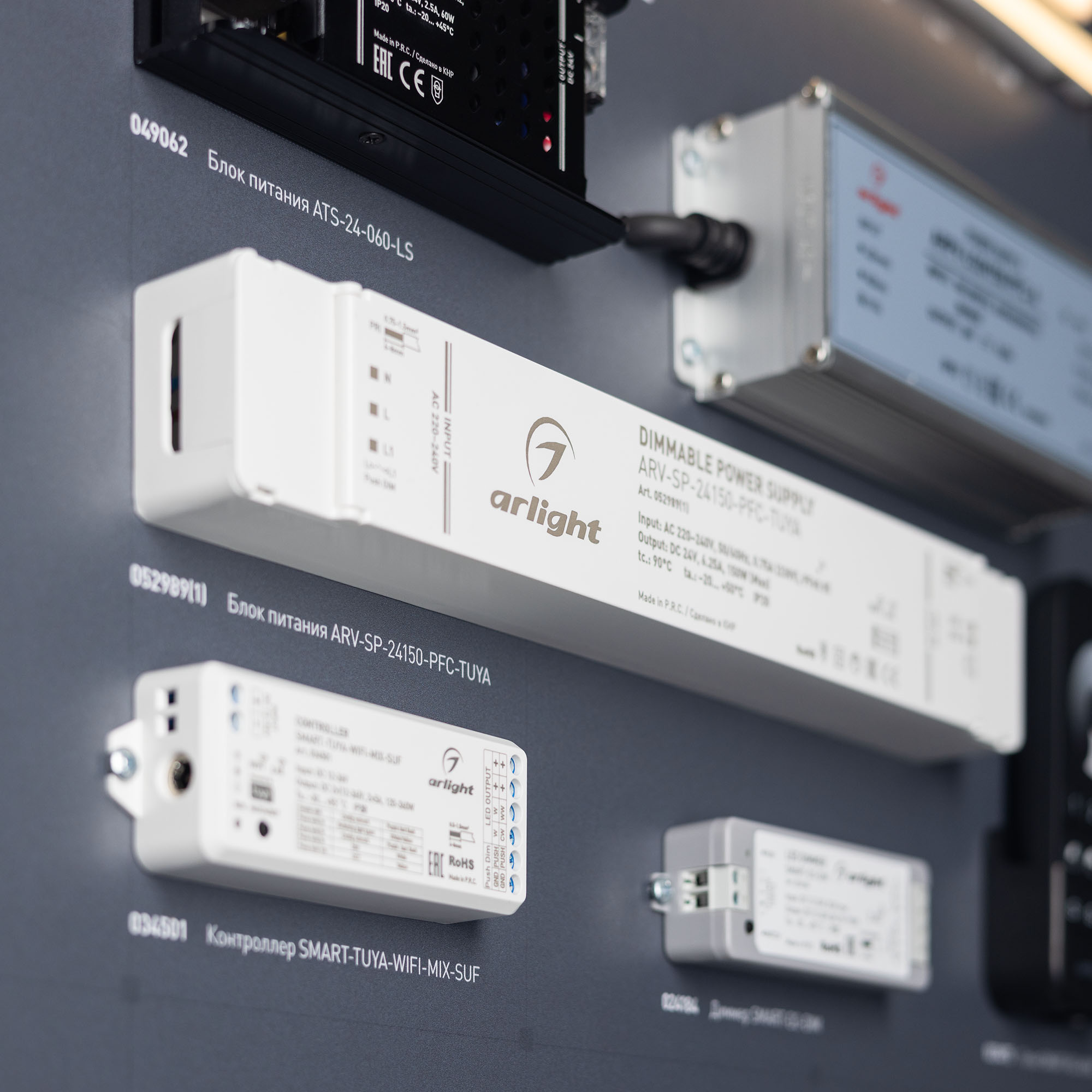 Обзорный мини-стенд по ассортименту светодиодных лент и их применению совместно с накладным профилем для декоративного и основного освещения.