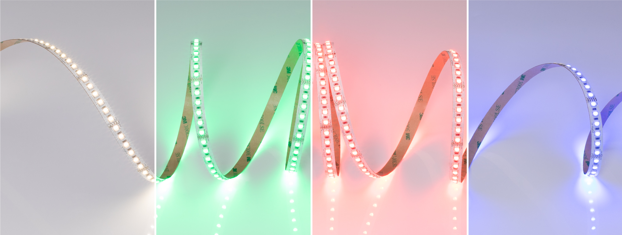 Все цвета в одном светодиоде Каждый светодиод имеет 4 канала свечения (RGB и канал белого цвета), что делает свечение подсветки более однородным по всей длине ленты.