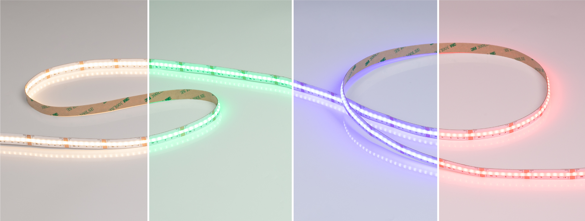 Мультицветная лента серии COB X840 предназначена для создания декоративной подсветки ниш и отдельных элементов интерьера. За счет высокой плотности светодиодов образуется насыщенное равномерное свечение.
