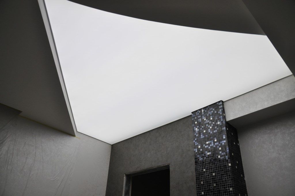 В проекте реализована два варианта освещения. Первый вариант равномерная подсветка натяжного потолка светодиодной лентой
