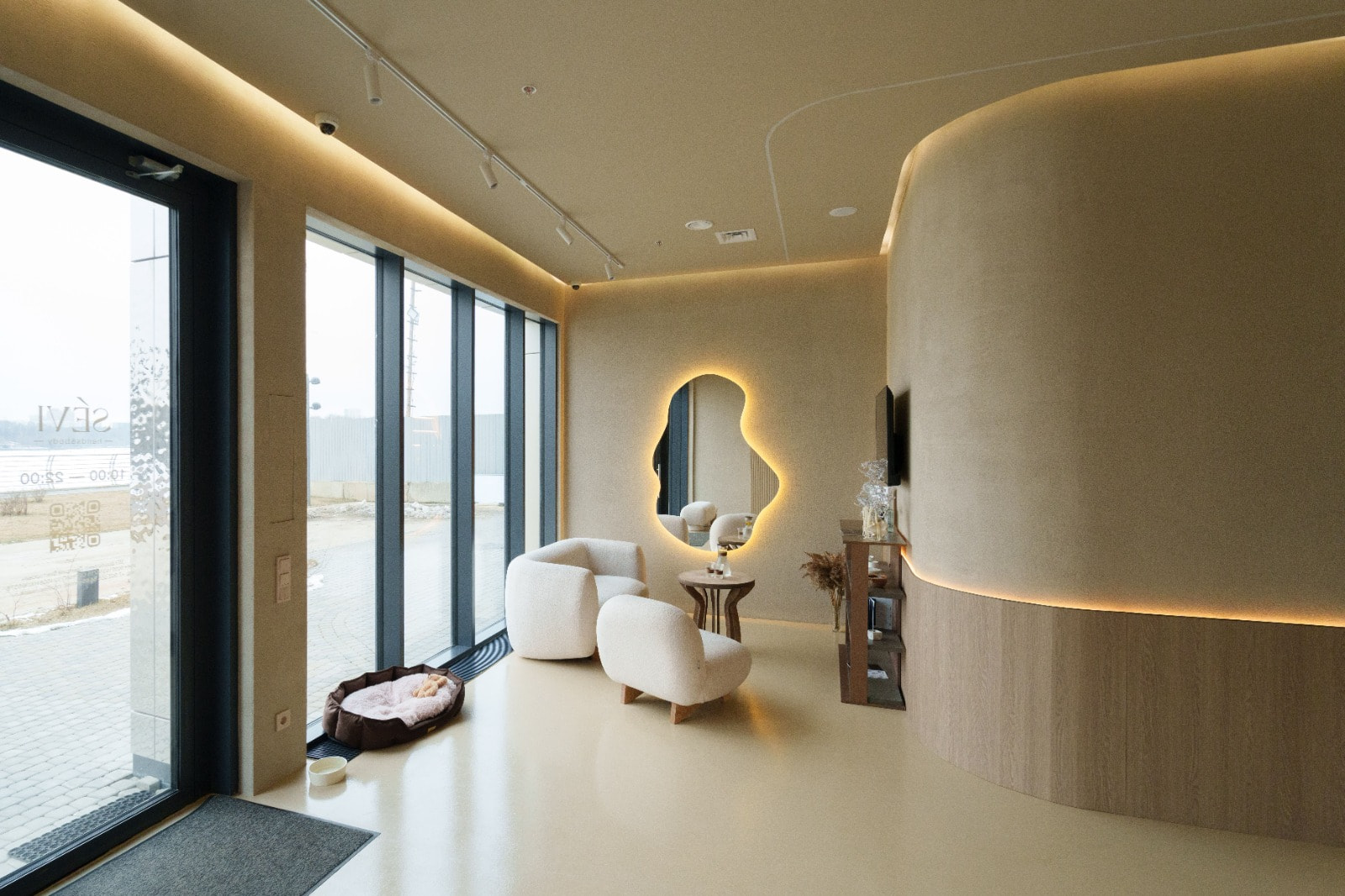 встроенных точечных светильников GLORY в зоне ресепшена, обеспечивающих комфорт для администратора;