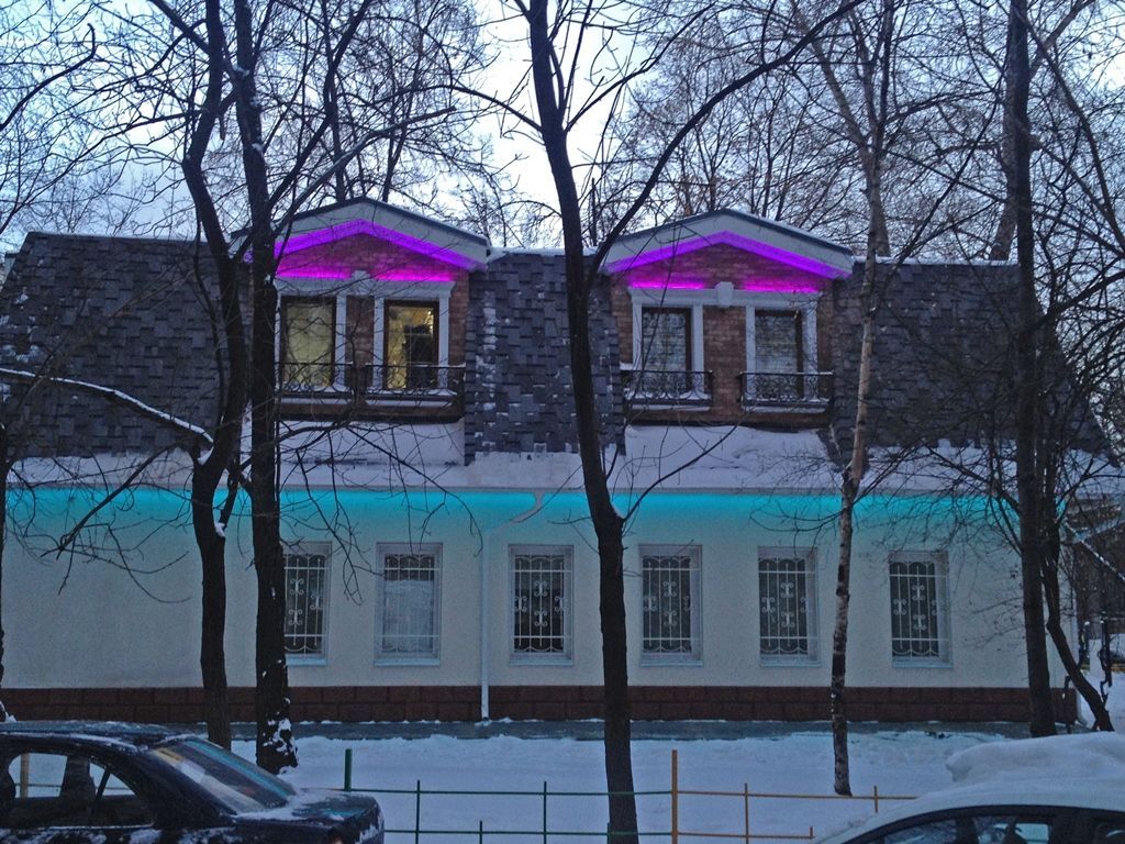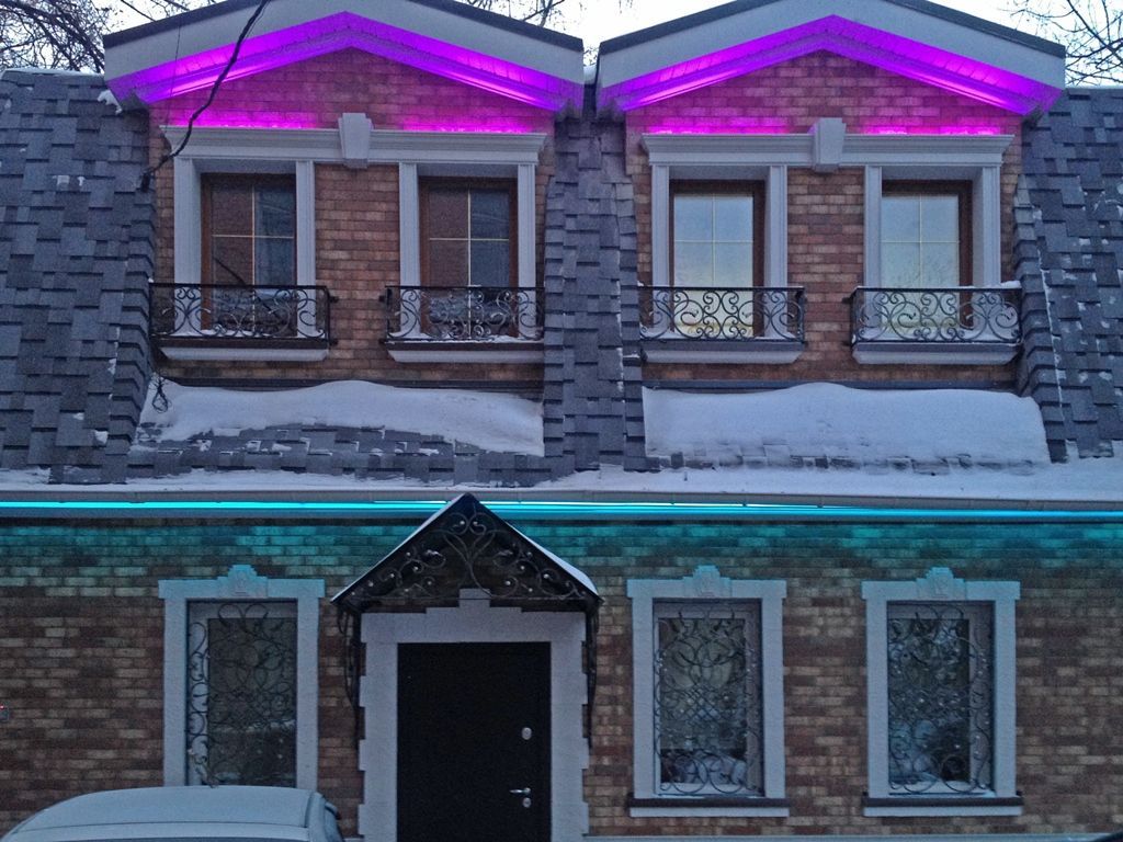 Все чаще и чаще проходя по улицам городов можно встретить освещенные фасады как отдельных зданий, так и целых кварталов. Применение светодиодного оборудования для декоративной архитектурной подсветки открыло новые возможности в данном виде освещения за счет низкого энергопотребления, компактности оборудования и широкой цвето-световой гаммы RGB LED технологии. Подсветка была выполнена с применением светодиодного оборудования arlight®.