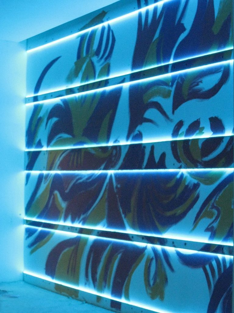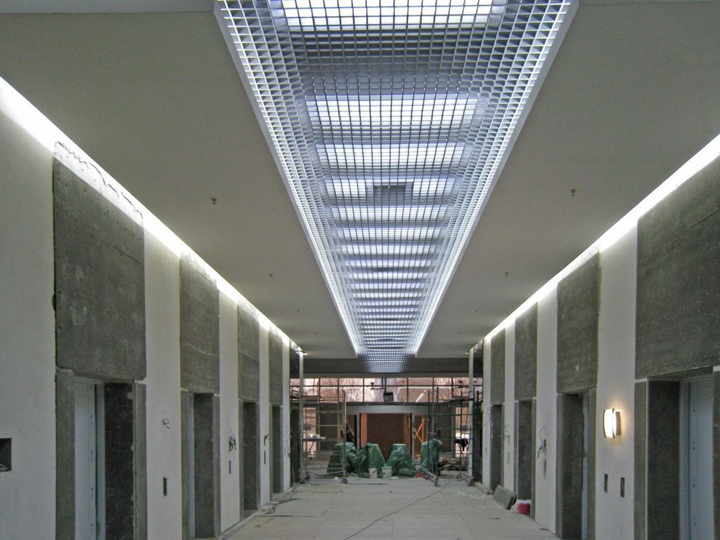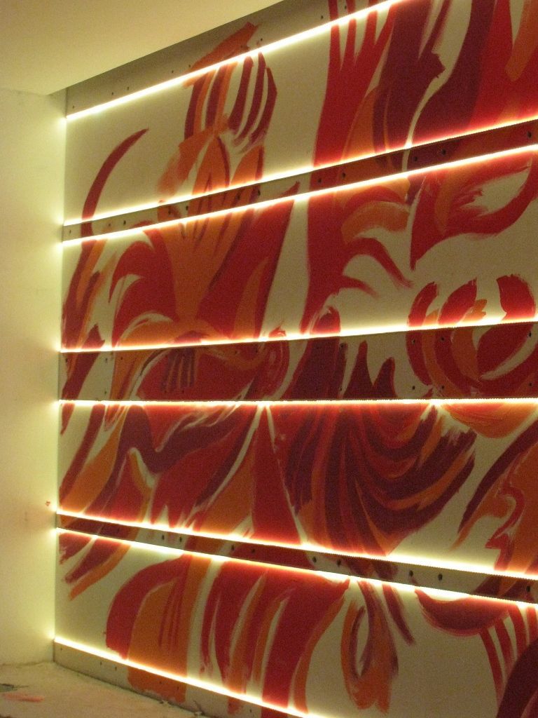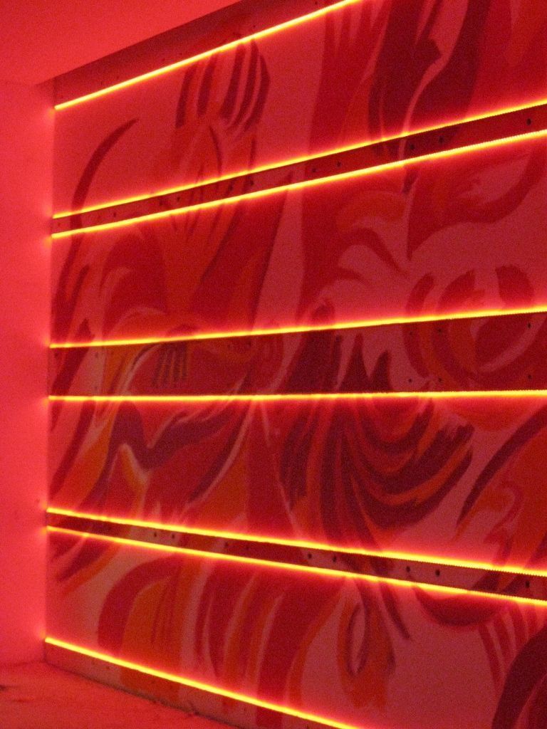 Освещение коридора в торговой палате было дополнено светодиодным освещением, расположенным за навесным гипсокартонным многоуровневым потолком. Также была сделана многоцветная подсветка декоративных панелей с применением светодиодной ленты arlight®.