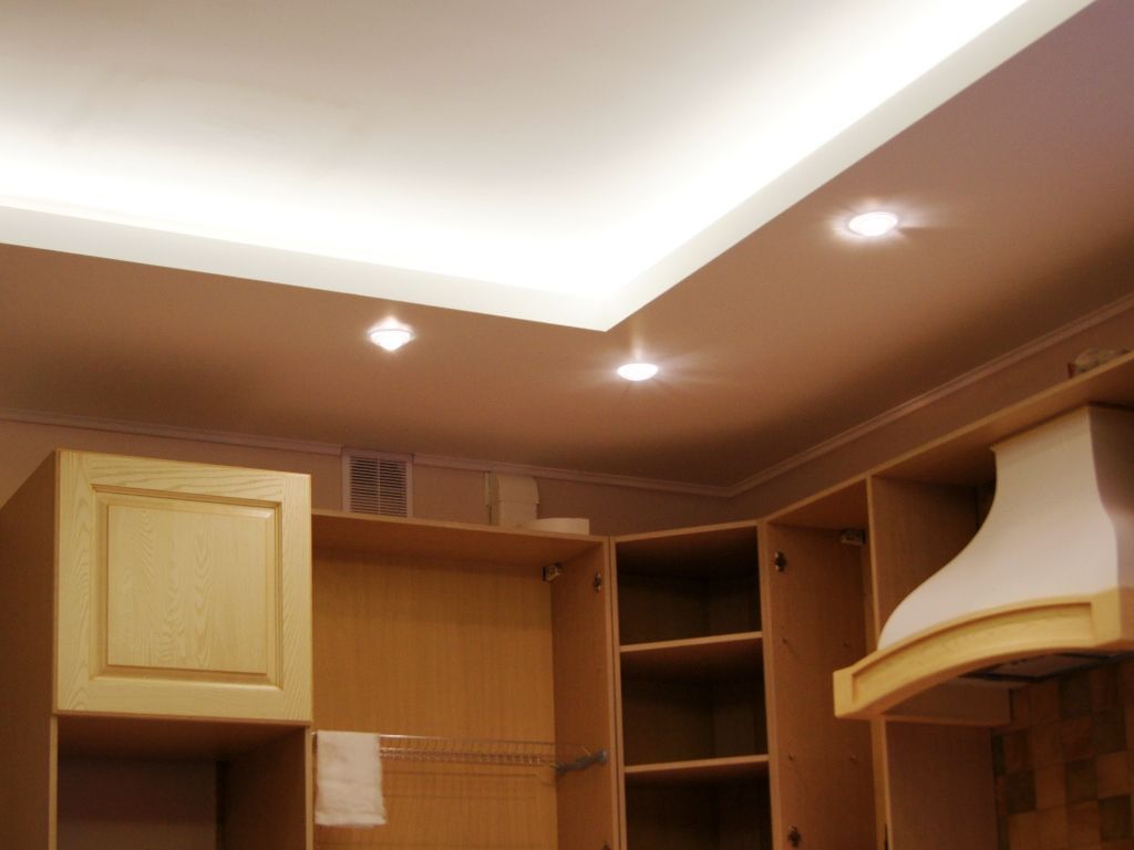 Скрытая светодиодная подсветка, установленная за гипсокартонным потолком, дает мягкий равномерный рассеянный свет. Применение диммеров